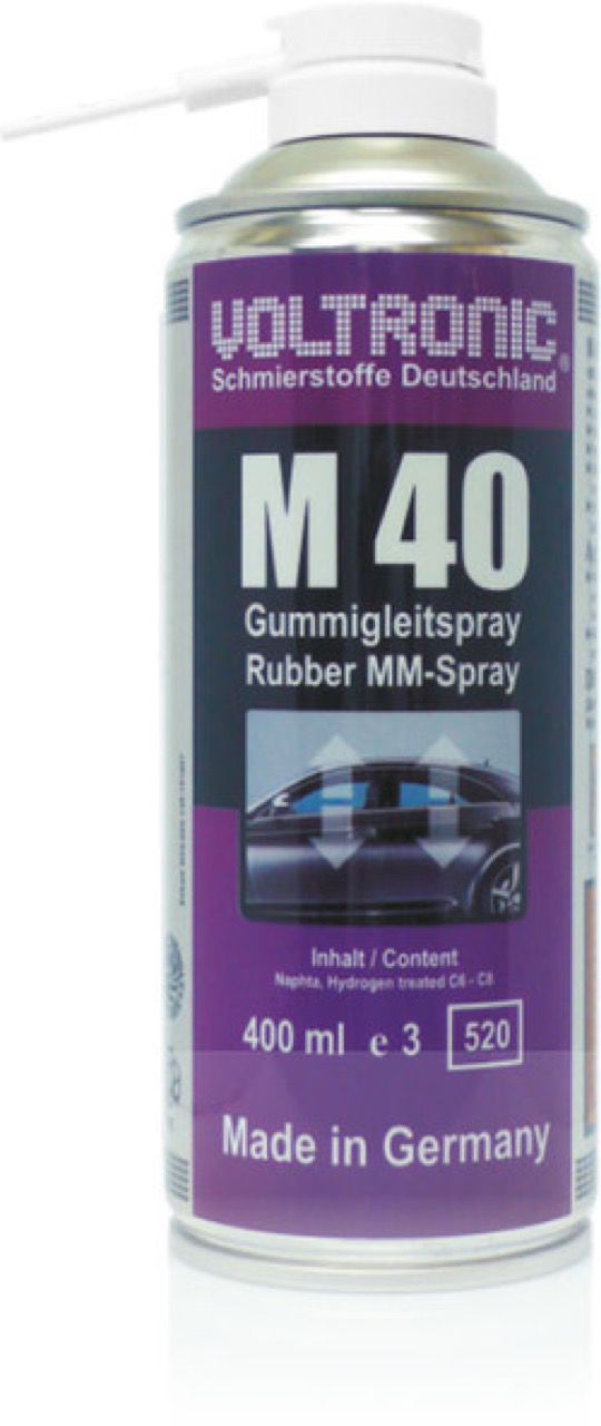 VOLTRONIC ® M40 Gummigleitspray ist ein Hochleistungs-Gummischutz. Speziell entwickelt für Gummiteile: Verhindert Alterung, bringt Flexibilität und Farben zurück, verhindert das Brüchigwerden von Gummiteilen.