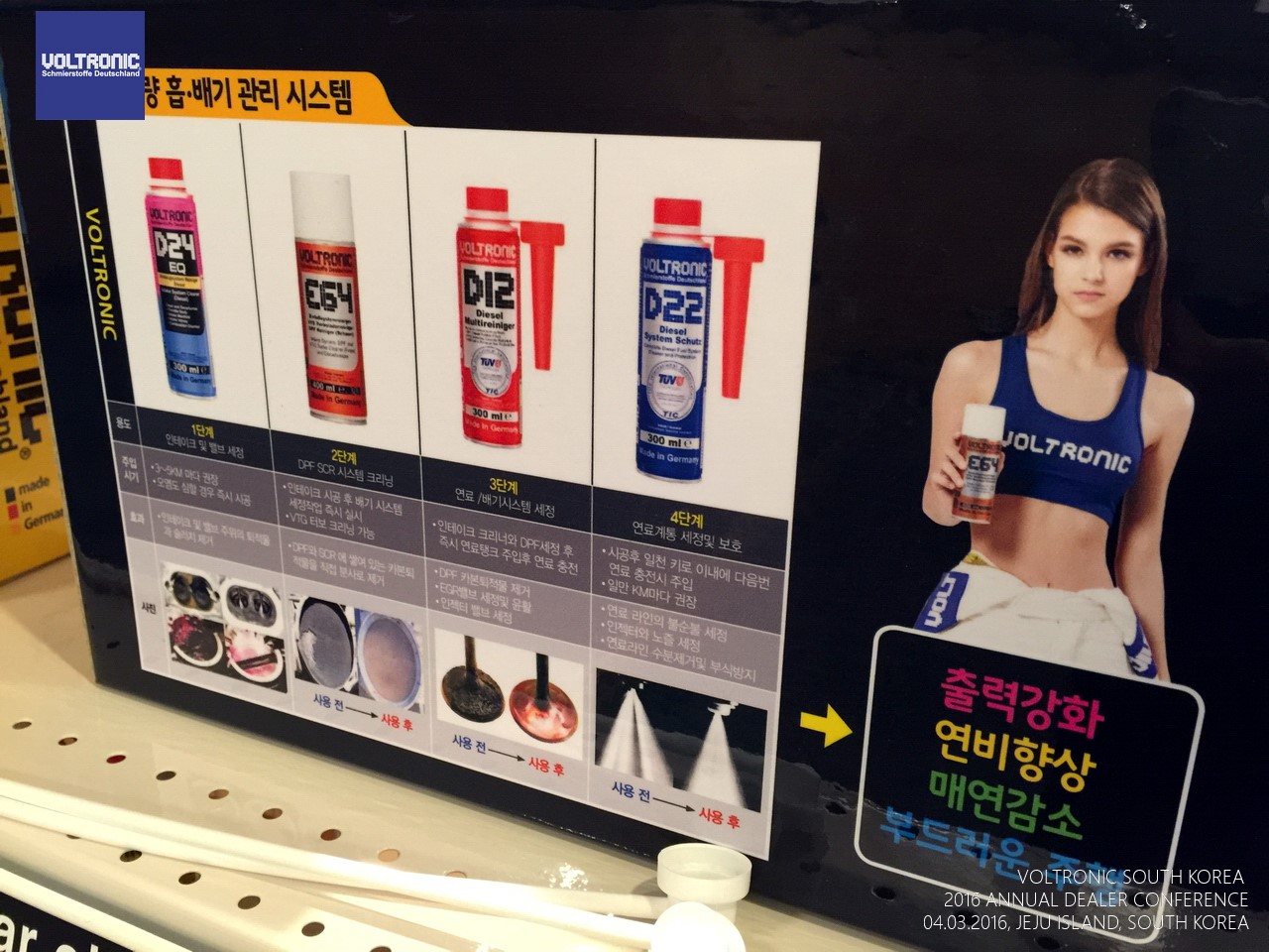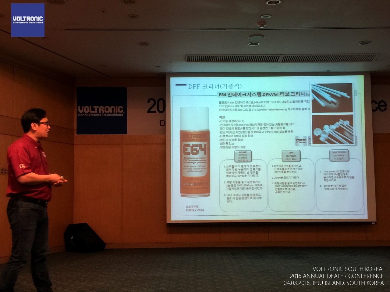 Welcome to the VOLTRONIC South Korea Annual Distributor Conference 2016. The VOLTRONIC South Korea dealerships business growth steadily in the past 5 years brought the Group into the next higher level. New VOLTRONIC products are introduced and launched at this event, they are VOLTRONIC 5W30 HCO-C3 Motor Oil, VOLTRONIC E64 three in one DPF Cleaner-VGT Turbo Cleaner-Intake System Cleaner (foam type), VSS (VOLTRONIC SERVICE SOLUTION) high-definition detailing and special additives, VOLTRONIC E40 Hydraulic Tappet Additives, VOLTRONIC G62EQ and D24EQ Complete Intake System Cleaner and VOLTRONIC BEDI Machine. VOLTRONIC South Korea Annual Distributor Conference 2016 take place on 4th of March 2016 in Jeju Island, South Korea.