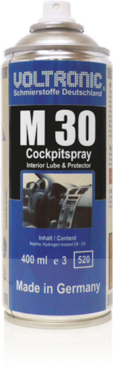 VOLTRONIC ® M30 Cockpit Spray is high performance interior protector. Protect plastic, rubber, chrome and fabric, prevent them from crack, dull and discoloration. Protect from UV radiation, revitalize and preserved interior color.