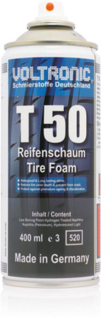 VOLTRONIC ® T50 Tire Dressing is high performance tire dressing spray base on synthetic material. Restore non-shiny and wet look tire appearance, no wiping or brushing required and long lasting effect.